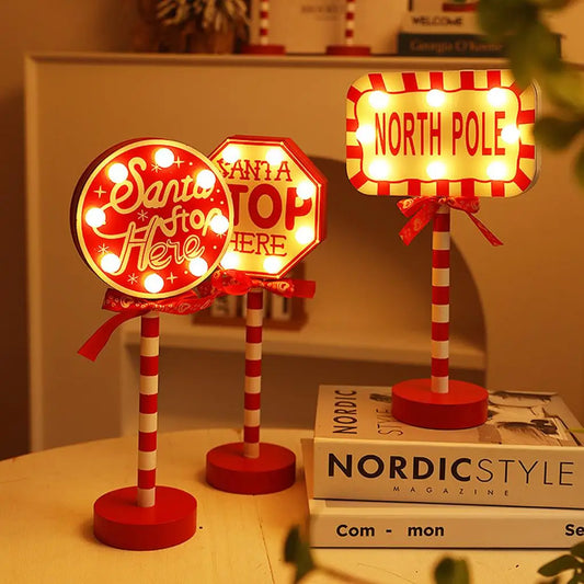 Christmas Road Sign STOP Decorative Lights Wooden Christmas Holiday Window Tabletop Ambience LE Colored Lights Christmas Decor