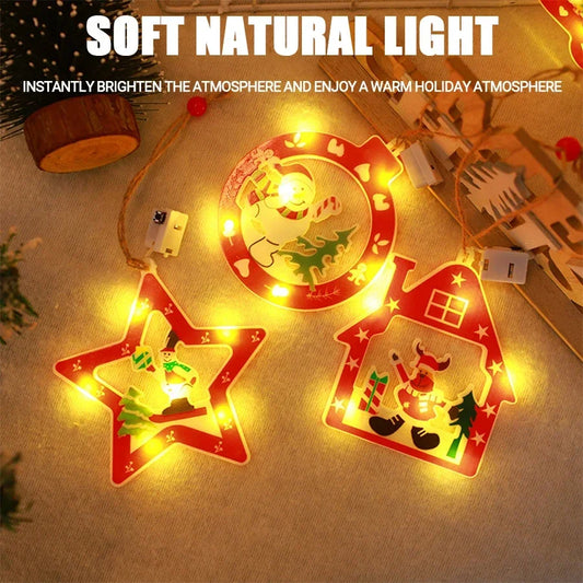 Christmas Decor Light Window Lamp Hanging Ornament Santa Claus Decoration Lights Star Snowman Indoor Lights Outdoor Tree Decor