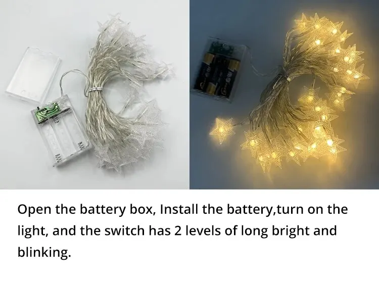 • Star Shape :The star shape of these lights adds a unique and attractive aesthetic, making them a standout feature in any decoration setup.