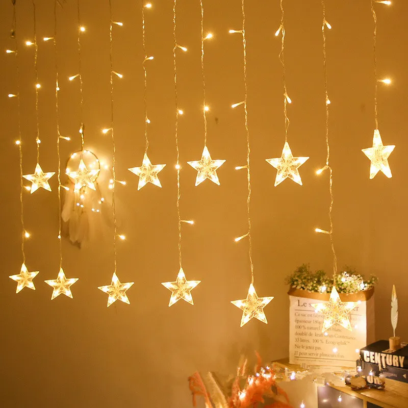 LED Icicle Star Moon Lamp Fairy Curtain String Lights Garland Christmas Lights Decor for Room Home Wedding Party Window Decor